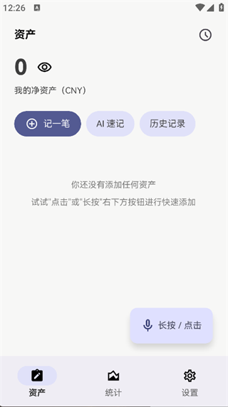 3、点击页面下方的统计,即可根据记录,查看资产变化趋势。