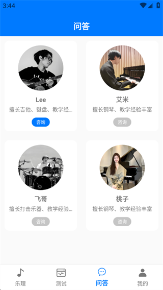 1、汇聚不同乐器方向名师,提问时可指定钢琴、吉他等领域,获得适配乐器演奏的乐理解答。