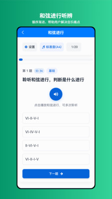 3、测试分阶段设置,从初级的音程判断到高级的和声分析,自动生成错题本,针对性查漏补缺。