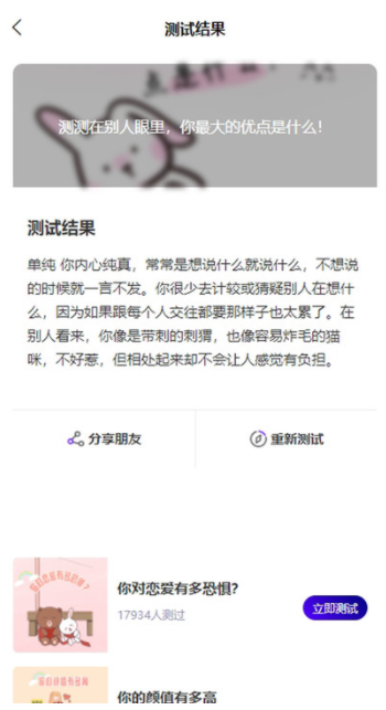 2、社交分享模块支持测试结果的艺术化呈现,满足用户在社交平台的展示需求。