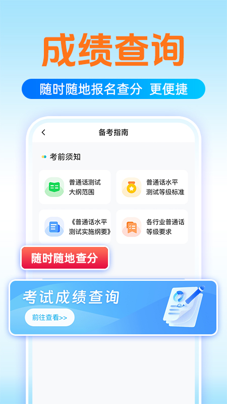 2、提供各种普通话测试,拥有真题测试卷,在线帮您预估分数。