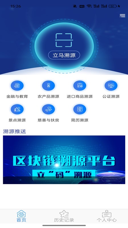4、在个人中心页面,可以查看扫码历史、我的溯源。
