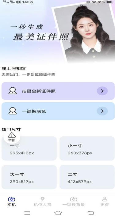 3、用户可以根据需求在线选择你的证件照的尺寸,并且快速在线点击。