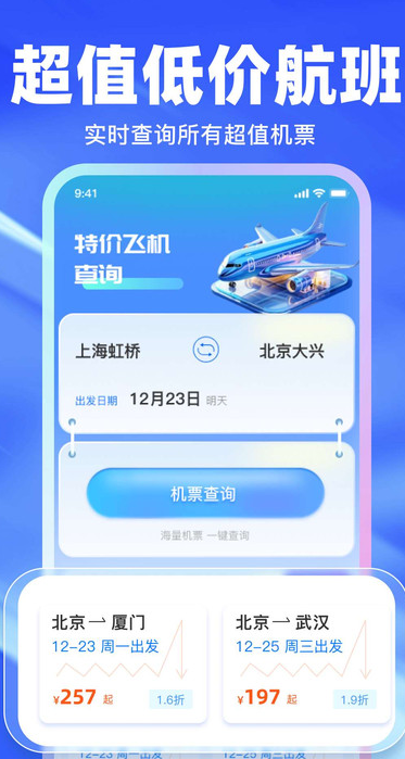 2、无论用户计划国内短途出行、跨省差旅,还是国际长途旅行,都能在这里找到高性价比机票。