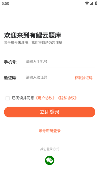 4、有账号密码的用户可以输入账号密码登录,还可以授权微信登录。