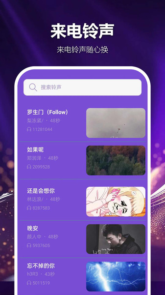 1、这款应用构建了多元化的音频资源库,通过智能分类系统实现铃声素材的精准归集与展示。