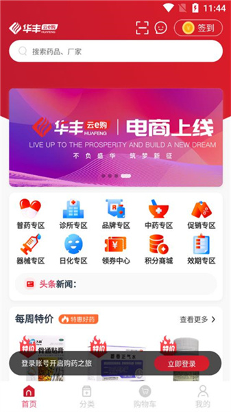 4、来到软件首页可使用普药专区、诊所专区、品牌专区、中药专区等功能。