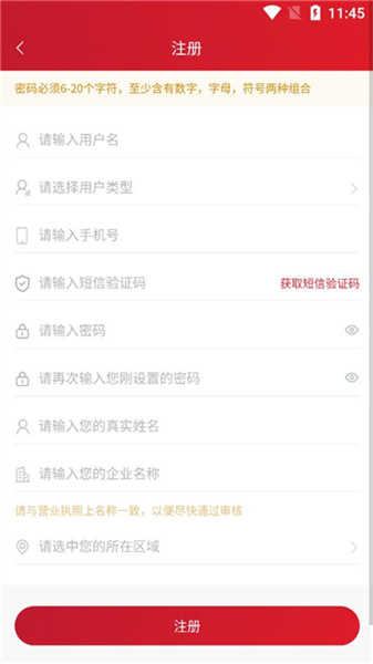 2、来到软件注册页面输入用户名、手机号、验证码、密码、姓名即可完成。