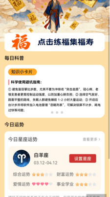 走路添福寿app是一个多功能的手机运动计步软件,不管你喜欢什么样的运动方式都可以精准记录每一步,随时可以在线来添加自己的运动计划,让你养成好的运动习惯,每天还有超多的百科知识在线来分享,让你在空闲的时候可以来浏览学习一下,帮助你增长自己的知识库,感兴趣的还可以快速的收藏起来。