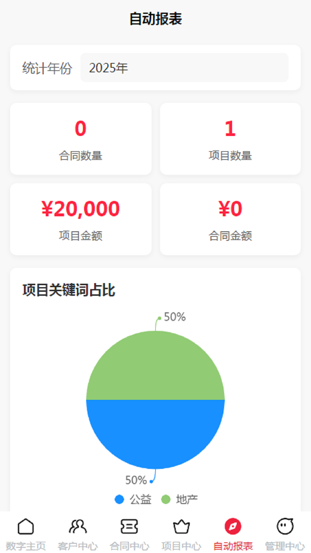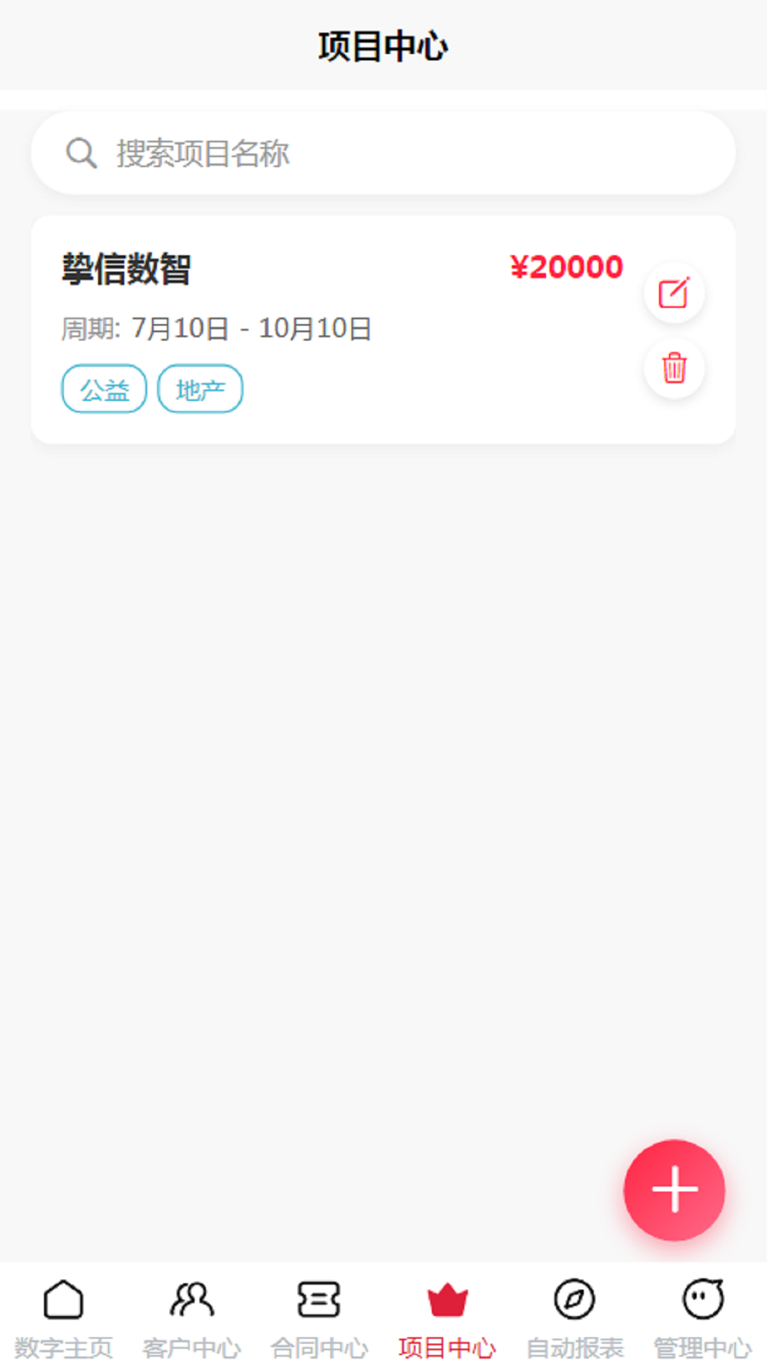 4、点击【合同中心】进入,完善的合同信息都是可以实时管理。