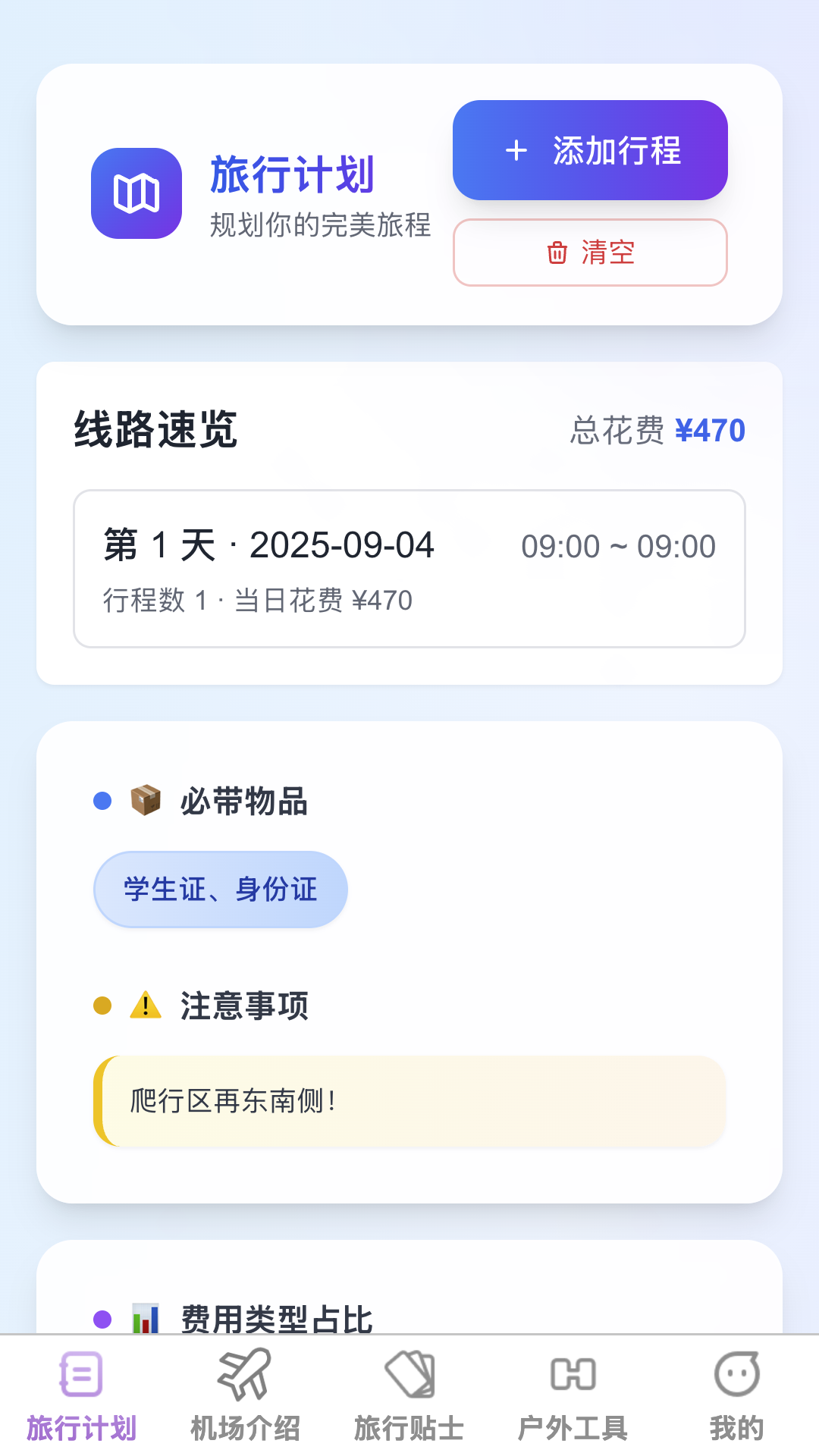 2、旅行计划随心定,进入应用,首页即展示个性化旅行计划制定界面,根据目的地、出行时间等偏好,快速生成专属行程。