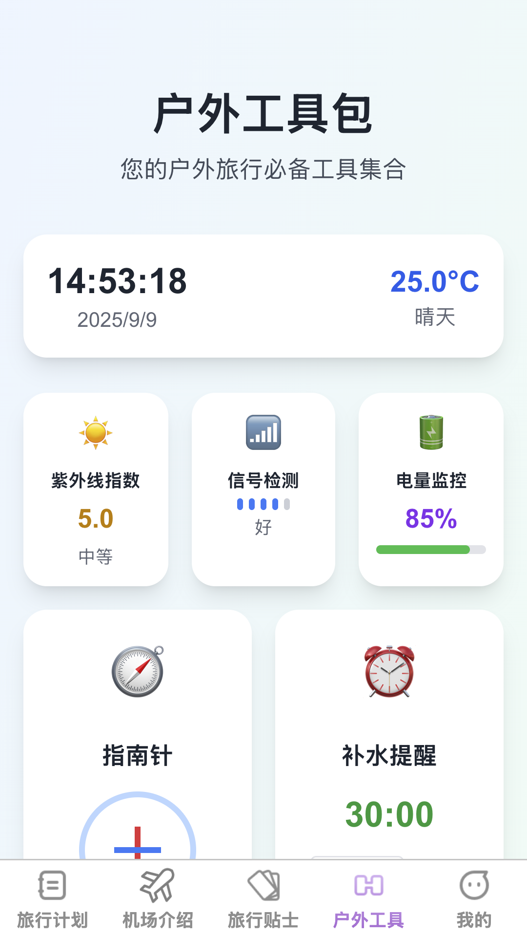 3、户外工具箱,集成天气预报、紧急联络、语言翻译等实用工具,确保户外旅行安全无忧。