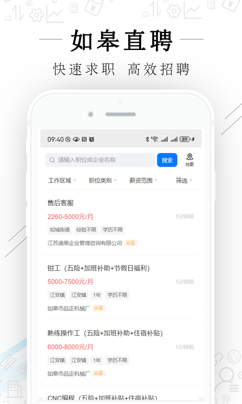 1、聚焦如皋本地招聘,岗位信息分钟级更新,覆盖全职、兼职等类型,精准匹配本地求职者与企业需求。