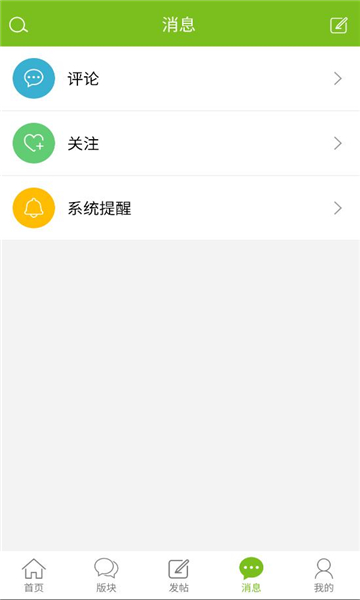 2、点击消息,这里可以查看评论以及关注和系统提醒。