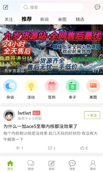 1、打开安装好的软件,点击进入首页,这里有最新的帖子推荐。