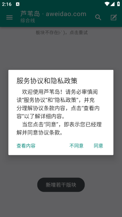1、打开安装好的软件,点击同意服务协议和隐私政策。