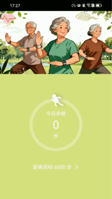 2、能够自动记录老年人每日的步数,并且设置了6000步的健康目标。