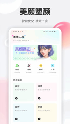 3、还有强大的美图工具,涵盖了抠图、滤镜、贴纸等功能;