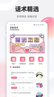 1、首页我们就可以看到大量的恋爱话术,还有真实案例为你提供;