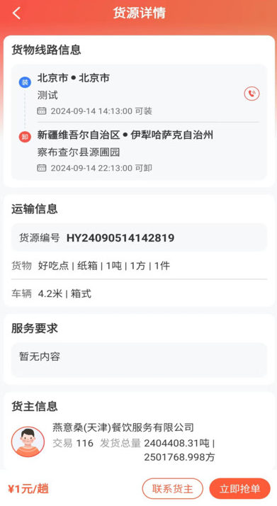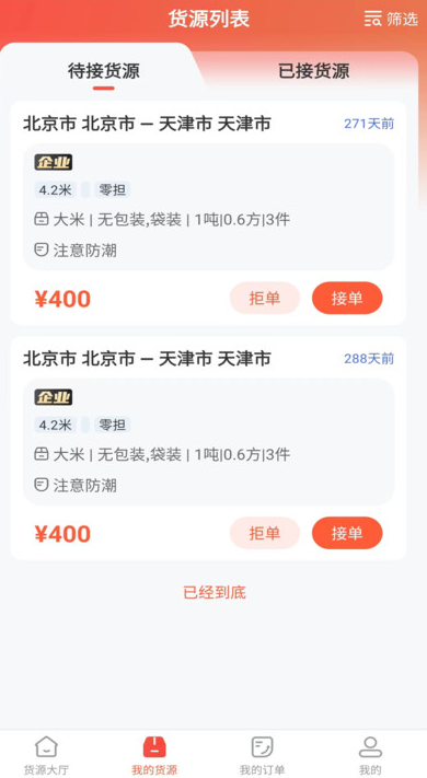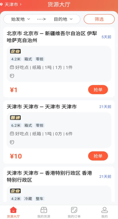 3、货源大厅将会随时上线新货源,可以快速在线抢单。