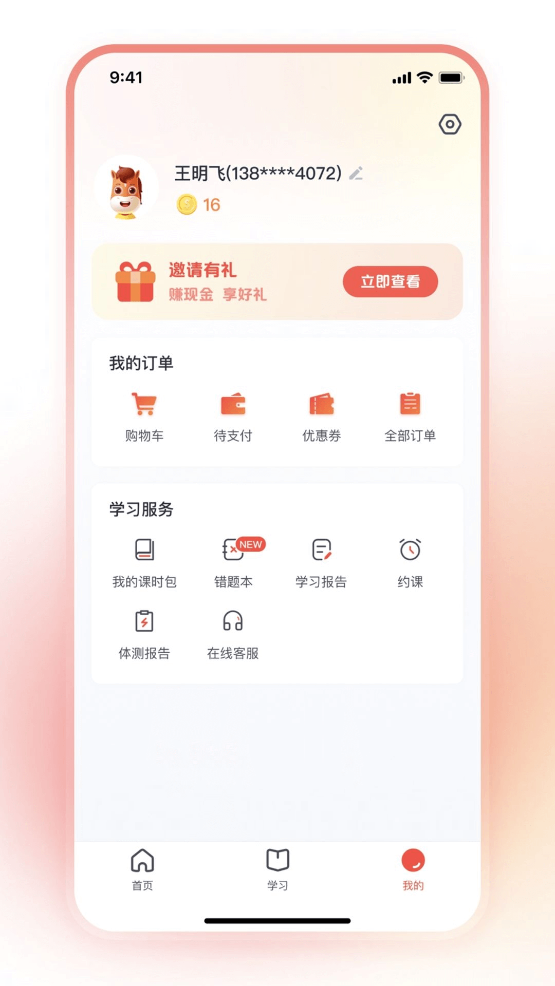 3、提供个性化学习路径规划,根据入学测评结果推荐课程,APP动态更新学习进度,适配成长节奏调整方案。