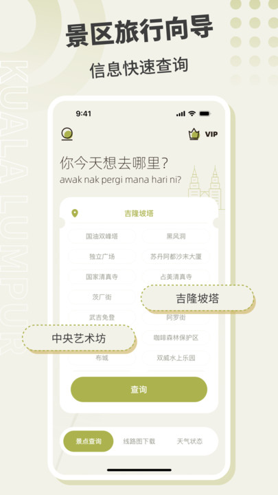 3、整合吉隆坡热门景点、购物中心、餐厅等位置信息,帮您规划行程并推荐最优交通方式。