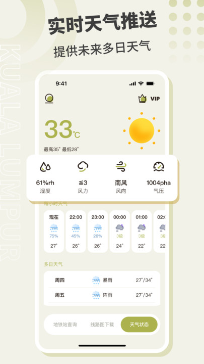 1、主页信息分类明确,包括实时地铁图、热门景点推荐、天气预报等功能模块一目了然。