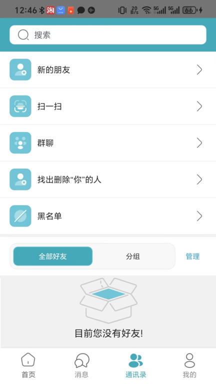 4、点击通讯录,这里有你的好友,还可以添加新的朋友。
