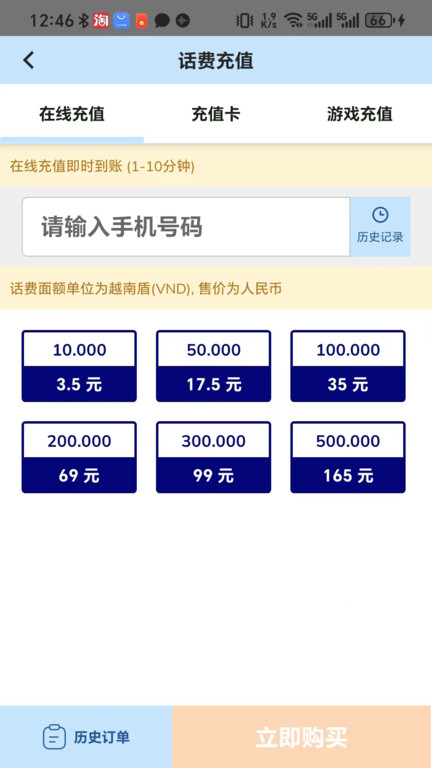 1、用户可以直接在App内为手机号码充值话费或购买数据流量套餐,确保在越南期间的通讯畅通无阻。