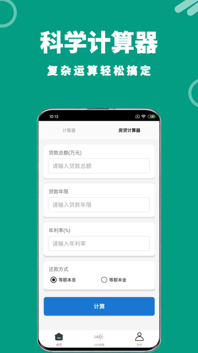 2、进入首页可以看到丰富的功能,可以输入相应的数值进行计算。