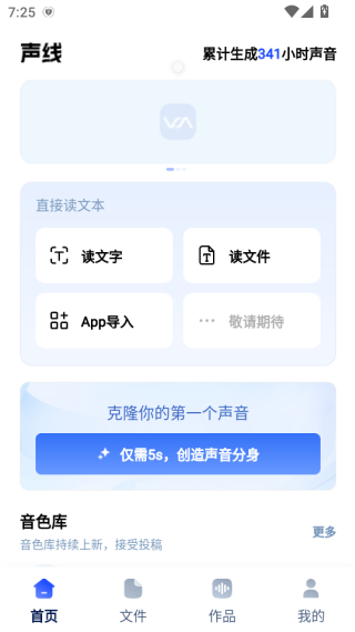 1、进入首页,仅需5秒即可完美复刻你的声音。