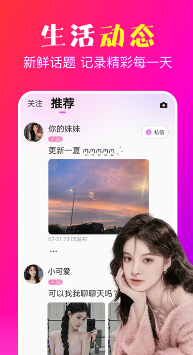 妙约app是一款高颜值异性一对一在线互动交友软件,每天都会有大量的新用户将会随时来这注册个人账号,有了账号就可以快速在线互动交友,线上提供的交友方式也是比较多,用户可以关注你感兴趣的人,也可以随时和他人在线面对面互动,增加了交友的乐趣,也可以让你及时配对合适的人,足不出户就可以享受独特的交友模式。
