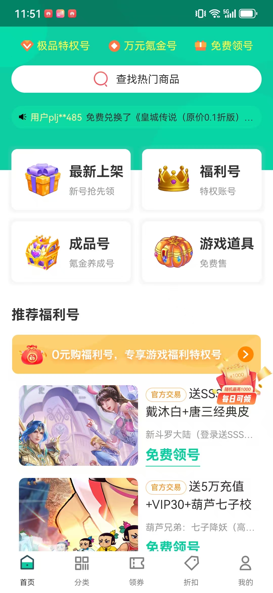 4、任你随时进入首页,及时来这选择领取免费的账号。