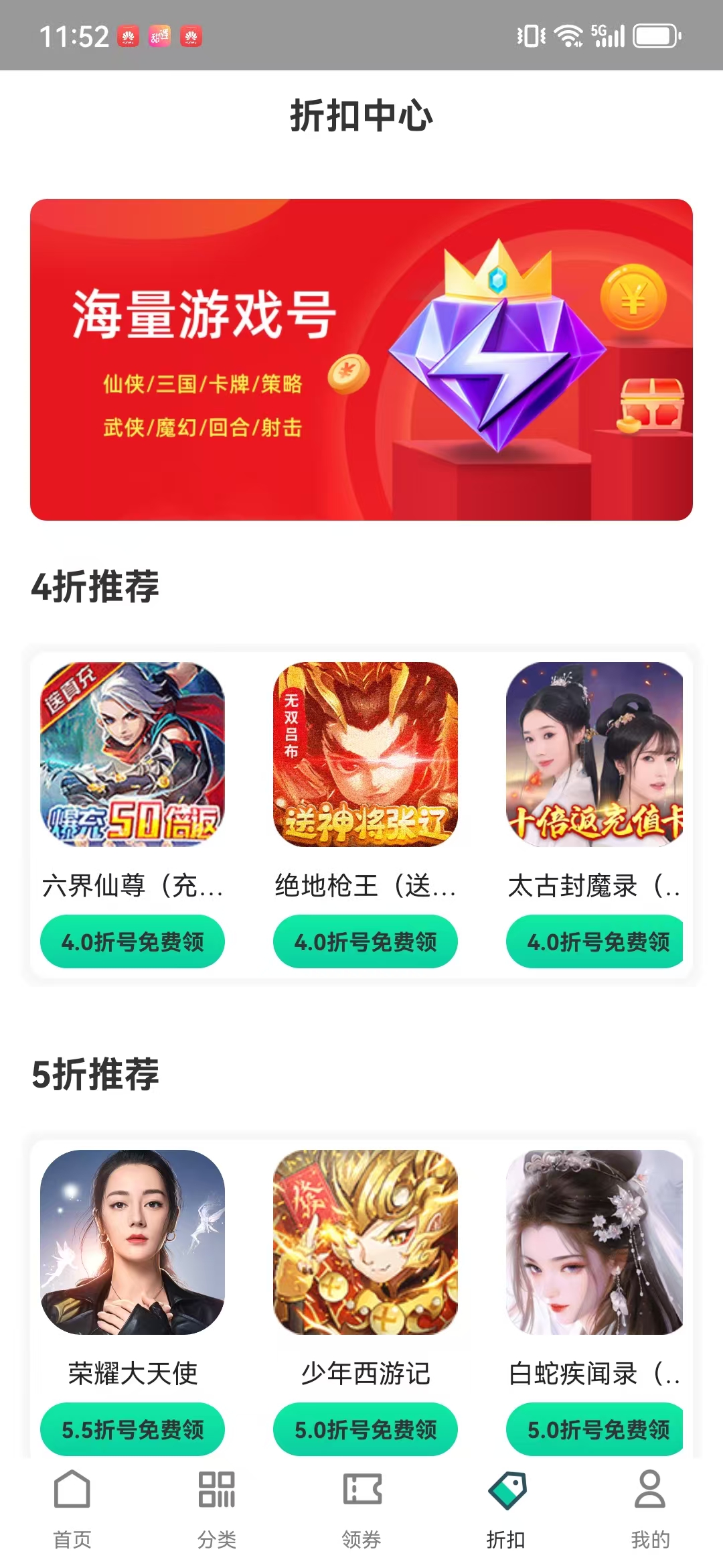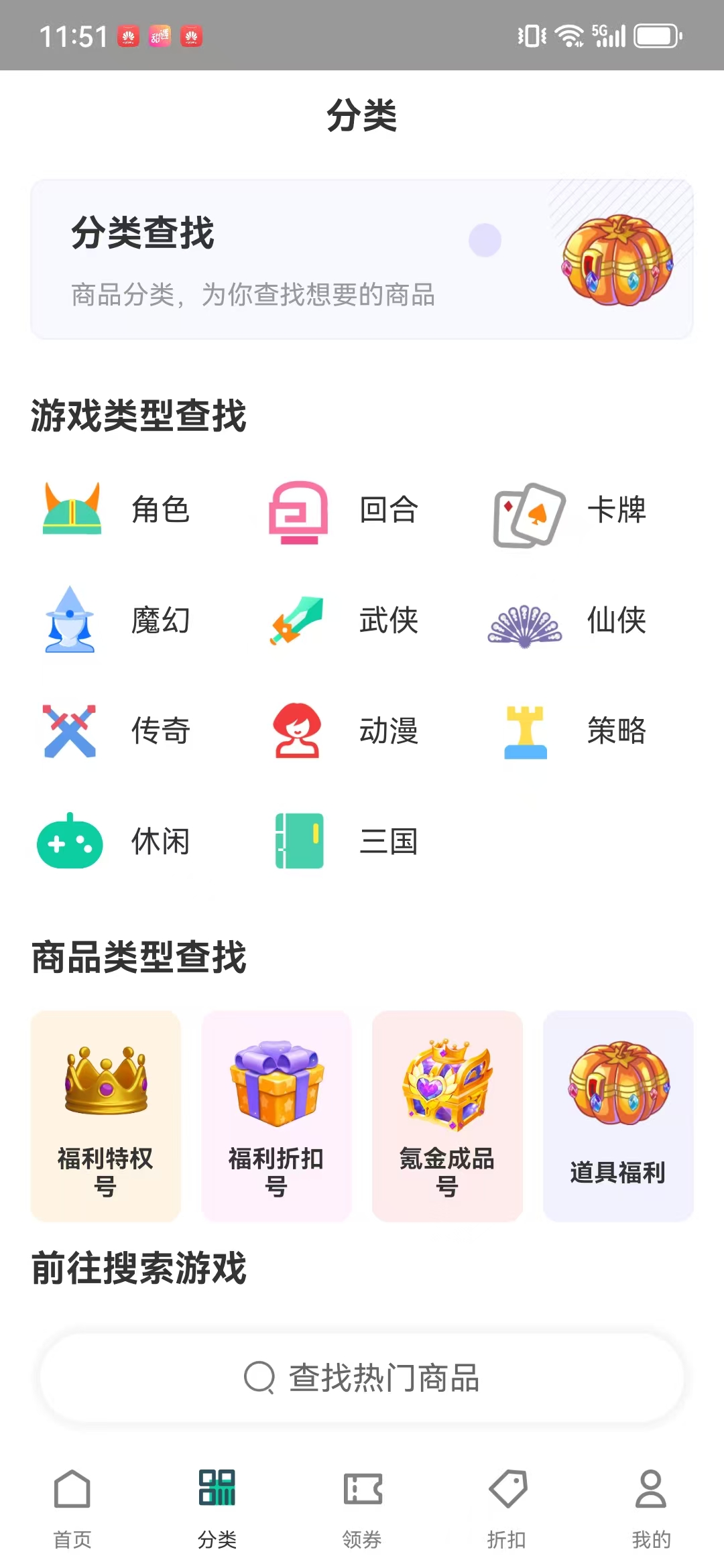 3、玩家可根据想玩的游戏类型,在对应分类中找到合适的免费账号。