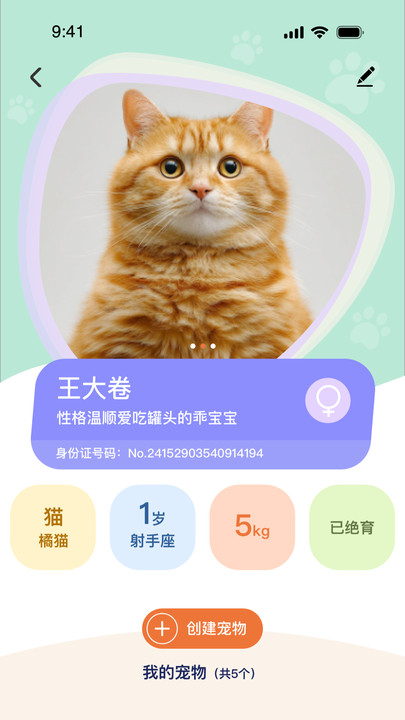 4、进入我的个人信息页,可随时查看萌宠的信息及照片。