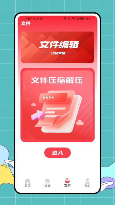 4、在文件页面,点击进入,获取外部存储权限,进行文件添加、解压或压缩等操作。