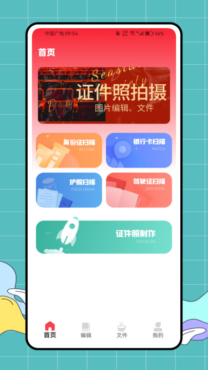 1、在首页,提供身份证扫描、银行卡扫描、护照扫描、驾驶证扫描等功能,还有证件照制作服务。