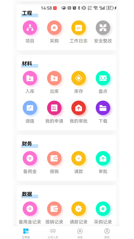 2、进入首页可以看到丰富的功能,工作台上的管理都是非常全面。