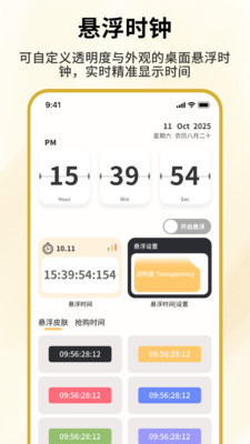 1、悬浮时间可随意拖动至屏幕角落,数字清晰不遮挡主界面,刷视频、办公时抬头就能看时间,分秒都能掌握。