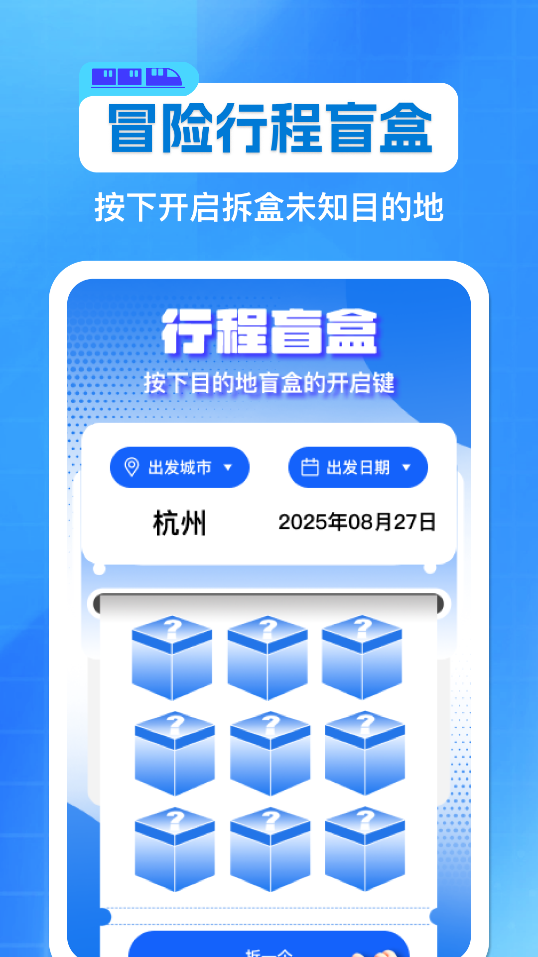 2、输入预算与出行偏好,系统随机匹配目的地与车次,解锁未知旅行体验,适合追求惊喜的年轻群体。