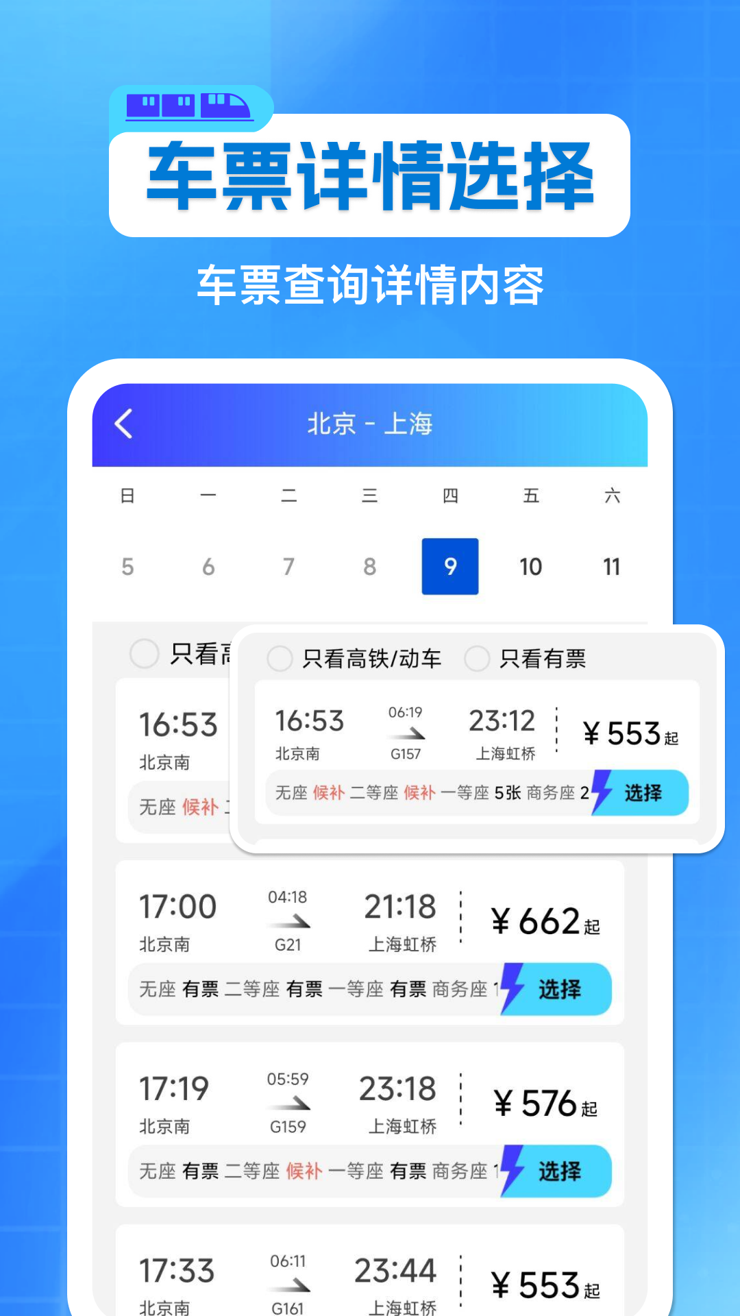 3、无论是追求效率的商务人士,还是热爱探索的背包客,都能以科技赋能出行,让购票更省心,旅程更有趣。