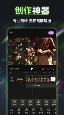 2、多功能创作工具集成度高,剪辑、调色、加字幕一步完成,不用在多个APP间切换,创作效率翻倍。