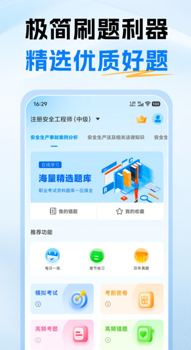 注册安全工程师考试题库app是一款很不错的线上备考刷题学习软件,在这学习比较简单,用户只需要利用你的空闲时间即可,系统将会快速为你提供最新的学习资源,任你随时在线挑选合适的资源进行收藏,在线学习的过程中也可以及时查看最新的考试大纲,让你在线备考更有方向,避免盲目去复习,用户还可以定制你的学习计划,让你学习无忧。