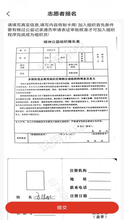 4、完成志愿者报名的表格,点击提交就可以轻松报名了。
