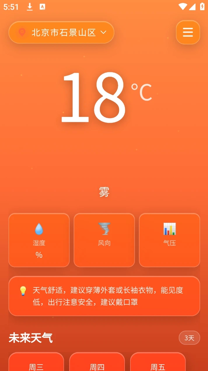 炎创科技天气app精确到分钟的降雨预报,用户可以提前做好准备,避免被雨淋,当检测到极端天气时,系统会第一时间发出警报通知,并附带避险建议,呈现高清卫星云图,让用户直观洞悉云层分布、气流流向等自然现象,实时更新空气质量指数,守护用户健康呼吸,纯净的使用界面,拒绝任何形式的广告干扰,让用户享受纯粹的天气查询体验,结合5G网络和卫星数据,提供超高精度的实时天气信息,定位精度可达毫米级。