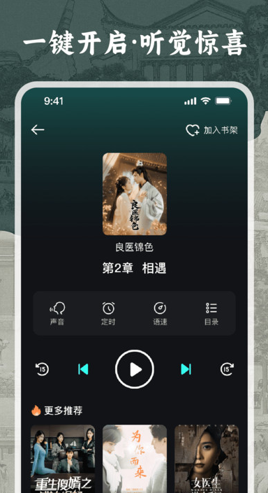 3、部分书籍搭配3D环绕音效与场景化背景音,让听众仿佛置身故事场景中。