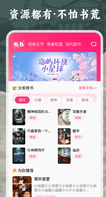 2、涵盖经典文学、玄幻小说、历史人文、儿童故事、职场干货等全品类书籍。