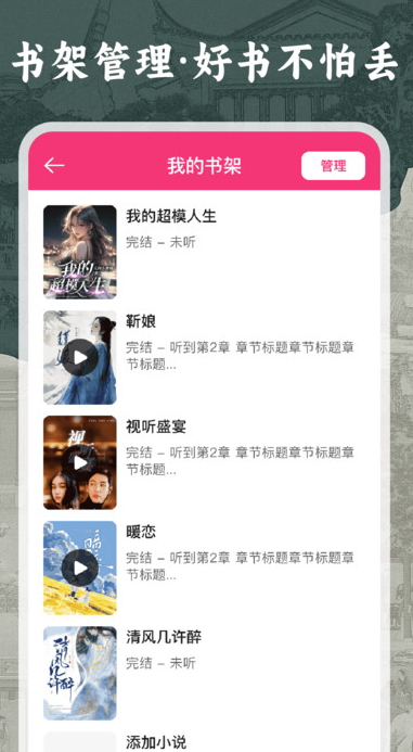 3、针对不同场景与用户习惯,提供多维度播放设置,让听书过程更随心、更沉浸。