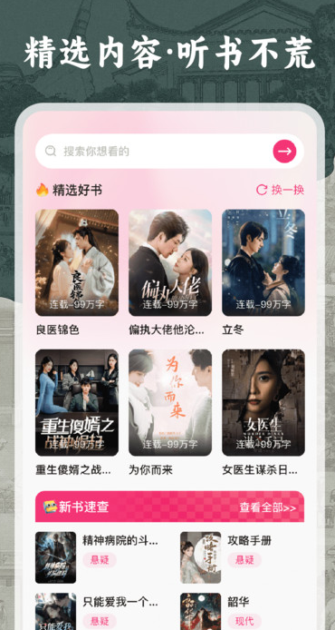 2、每日同步更新出版社最新上线的音频书籍,热门连载作品更是紧跟原著更新进度。