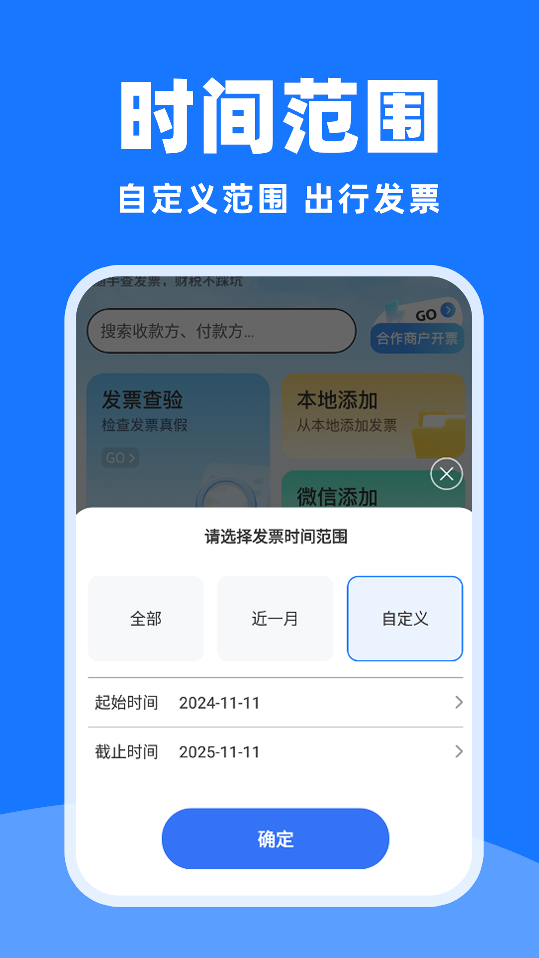 3、用户可随时随地通过app查看发票详情,支持按时间、金额等条件筛选,方便快捷,安装后即可开启智能发票管理。